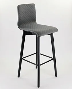 Hoker barowy drewniany czarny LUKA SOFT W szara tapicerka, 4 wysokości