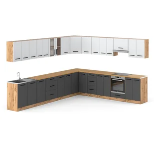 Kuchnia ROSSA 6.8m to imponujący zestaw mebli kuchennych, który łączy nowoczesne wzornictwo z wysoką funkcjonalnością i dużą powierzchnią do przechowywania. Dzięki solidnemu wykonaniu i uniwersalnemu stylowi, kuchnia ROSSA doskonale sprawdzi się w przestronnych wnętrzach, oferując praktyczne i estetyczne rozwiązania dla codziennego użytkowania. Najważniejsze cechy produktu: