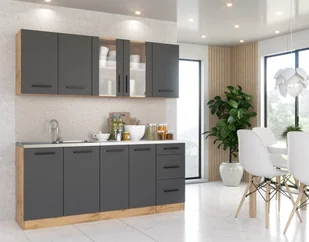 Kuchnia Nowoczesna Z Blatem Mała Rest 2.0m Modułowa Wotan Szary Dąb Wotan