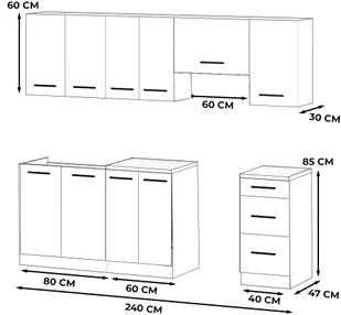 Kuchnia z blatem modułowa nowoczesna 2.4m mokka wotan szary mat biały mat