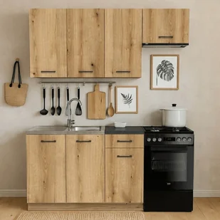 Zestaw MODERN 170 cm dąb evoke to nowoczesna i przytulna kuchnia gotowa do montażu. Kompaktowy rozmiar, przemyślany układ, prowadnice Hafele, regulowane nóżki. Idealna do małych mieszkań, wynajmu i domków. Styl, funkcjonalność i szybki efekt.