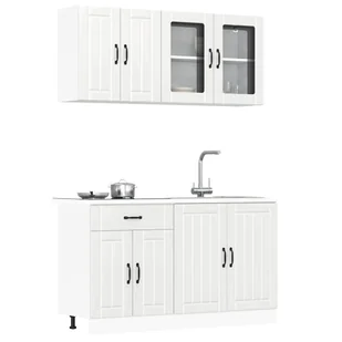 vidaXL 4-częściowy zestaw szafek kuchennych Lucca z drewna w kolorze białym o wysokim połysku