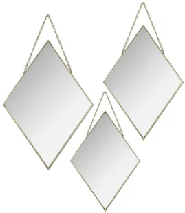 Komplet luster składa się z trzech złotych luster w kształcie rombów o różnych wymiarach.