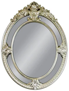 Lustro charakteryzuje się pięknie zdobioną, wytworną ramą, inspirowaną barokowym wzornictwem. Rama lustra wiszącego wykonana jest z masy PU i pokryta srebrnym szlagmetalem. Szlagmetal to cieniutkie listki metalu ręcznie nakładane i przecierane kamieniem Agatu co powoduje niepowtarzalną strukturę i kolor. Tafla lustra jest kryształowa. Wymiar tafli 65x85.
