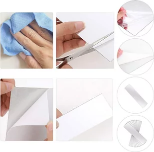 Szkło akrylowe Montaż: przyklejane Wysokość 50 cm Długość boku 5 cm Grubość 1 mm Lustro akrylowe jest znacznie bezpieczniejsze, nie tłucze się, minimalizuje ryzyko skaleczenia. Jest także o wiele lżejsze od tradycyjnego, szklanego lustra. Mocowane jest za pomocą mocnej taśmy montażowej, która znajduję się z tyłu lustra. Uwaga! Przed montażem lustra należy wyczyścić i odtłuścić powierzchnię na której lustro będzie mocowane.