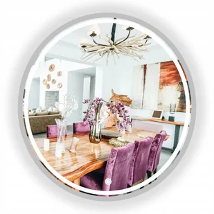 LUSTRO ŁAZIENKOWE LED DOTYK OKRĄGŁE ŚCIENNE W RAMIE 100 CM SREBRNE