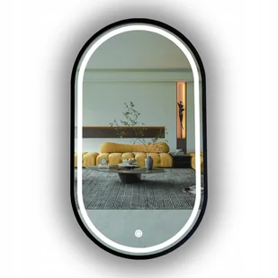 LUSTRO LED OWALNE W CZARNEJ RAMIE 75x40CM + WŁĄCZNIK DOTYKOWY
