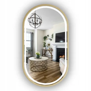 LUSTRO PODŚWIETLANE LED OWALNE ZŁOTE 90x55 cm ⚡ BEZ WŁĄCZNIKA DOTYKOWEGO ✅ TWORZONE RĘCZNIE - lustra są wykonywane po złożeniu zamówienia w celu zachowania j...