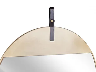 Wprowadź do swojego wnętrza nutę stylu glamour, ozdabiając je tym okrągłym, złotym lustrem ściennym. Wysokiej jakości szkło i rama z żelaza, zapewniają trwałość na lata. Lustro sprawdzi się zarówno jako dekoracja ściany w sypialni i salonie, jak i będzie praktycznym uzupełnieniem toaletki. Wyposażone w elegancki pasek z ekoskóry, jest łatwe do zawieszenia. Szczegóły: Typ produktu: