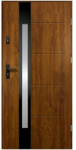 Drzwi o grubości 55 mm wykonane ze stali pokrytej folią dekoracyjną o strukturze i kolorze drewna, odporną na promieniowanie UV. Wypełnienie drzwi stanowi płyta z polistyrenu spienionego. Drzwi wyposażone są w dwa niezależne zamki trzypunktowe, trzy regulowane zawiasy, bolce przeciwwyważeniowe, uszczelki w ościeżnicy oraz progu, zestaw okuć i wkładek w systemie 1 klucza.