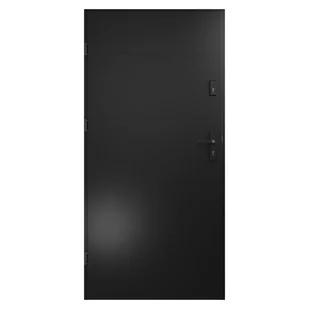 Drzwi otwierane na zewnątrz wzmocnione o grubości 68 mm wykonane z blachy stalowej pokrytej dekoracyjną folią PVC o strukturze i kolorze drewna, odporną na promieniowanie UV. Wypełnienie skrzydła stanowi płyta z polistyrenu spienionego. Skrzydło posiada uszczelki wzdłuż wszystkich czterech krawędzi. W uszczelki wyposażone są również ościeżnice oraz próg. Okucia w zestawie, klamka, szyld , wkładki, bolce antywyważeniowe, uszczelka, próg niski.