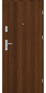 Drzwi Grafen orzech polski 80 prawe otwierane do wewnątrz dostarczane są kompletne: skrzydło jest założone na zmontowaną stałą drewnianą ościeżnicę, zamontowany jest próg ze stali nierdzewnej, wywiercone są otwory pod klamkę i szyld górny. Wewnątrz drzwi umieszczona jest paczka z kompletnymi okuciami w kolorze srebrnym: klamka, rozeta, dwie wkładki (jedna z gałką), wizjer. W celu dostosowania wysokości drzwi do otworu w murze dopuszczalne jest skrócenie drzwi nawet o 8 cm.