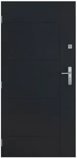 Drzwi zewnętrzne Rodan marki Pantor w kolorze antracyt o szerokości 90 cm (lewe) posiadają wypełnienie w postaci spienionego polistyrenu. Powłoka zewnętrzna wykonana została w technologii Nano Advance odpornej na szkodliwe działanie warunków atmosferycznych oraz zarysowania. W komplecie znajduje się: ościeżnica Frame Clik i próg ze stali nierdzewnej, klamka oraz komplet zamków. Grubość: 55 mm. Ciężar brutto kompletu:
