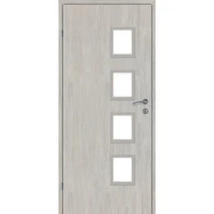 Cztery szyby z mlecznego szkła, umieszczone w kwadratowych ramkach, tworzą efektowny układ pionowy na skrzydle drzwiowym. To nietuzinkowe rozwiązanie, które wprowadza do wnętrza subtelność i delikatność, jednocześnie pozwalając na przepływ światła między pomieszczeniami. To także sposób na otwarcie przestrzeni, zachowując przy tym prywatność. Prato to nie tylko drzwi, to wyraz osobistego stylu i funkcjonalności. Zachęcamy Cię do otwarcia nowych możliwości z drzwiami Prato - gdzie design spotyka się z praktycznością, tworząc wnętrza pełne harmonii i elegancji.