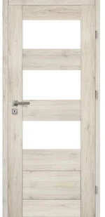 Drzwi wewnętrzne Mataro marki Artens, wykonane z ramy MDF, pokryte okleiną z folii 3D w odcieniu Dąb montana o strukturze drewna. Jako wypełnienie zastosowano płytę MDF, która zapewnia wysoki poziom izolacji akustycznej, a przy tym sprawia, że drzwi wyglądają na solidne i wytrzymałe. W zestawie dodatkowo znajduje się zamek oraz 3 zawiasy.