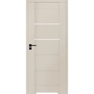 Drzwi wewnętrzne łazienkowe 70 prawe Vinci Cashmere marki Voster to eleganckie i funkcjonalne skrzydło bezprzylgowe, które doskonale wpisuje się zarówno w nowoczesne, jak i klasyczne aranżacje wnętrz. Solidna konstrukcja ramowa zapewnia trwałość i stabilność, a powierzchnia pokryta folią polipropylenową w stylowym odcieniu cashmere gwarantuje wysoką odporność na codzienne użytkowanie. Dwie wąskie szyby z hartowanego szkła w kolorze dark grey, umieszczone poziomo, dodają drzwiom lekkości i subtelnej elegancji, umożliwiając jednocześnie przepływ światła między pomieszczeniami. Wersja łazienkowa została wyposażona w podcięcie wentylacyjne, które zapewnia odpowiednią cyrkulację powietrza w pomieszczeniu, oraz zamek magnetyczny z blokadą, gwarantujący prywatność i wygodę użytkowania. Skrzydło posiada nawierty na dwa ukryte zawiasy 3D, które umożliwiają precyzyjną regulację i estetyczne licowanie skrzydła z ościeżnicą.