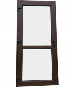 DRZWI ZEWNĘTRZNE PCV SKLEPOWE 90/200 ORZECH Grube Mocne Skrzydło z Szybą