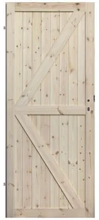 Pełne drzwi drewniane w rozmiarze 60. Charakterystyczny wygląd w starym stylu nadają urok pomieszczeniom. Skrzydło sęczne i sposób ułożenia elementów w drzwiach sprawia, że idealnie pasują one do drewnianych podłóg i wykończenia.