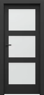 Wewnętrzne drzwi marki porta to skrzydło verte home czarny n 3 czarny matt. Są to drzwi ramiakowe w czarnej okleinie super matt. Doskonale odnajdą się we wnętrzach minimalistycznych, ale także klasycznych, skandynawskich czy glamour. Skrzydło verte home czarny n 3 czarny matt wyróżniają duże powierzchnie szklane wykonane matowym szkłem. Wyposażone jest w trzy równe szyby.