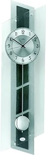 Koniec z żmudnym ustawianiem i przestawianiem wskazówek zegara, ponieważ zegar ścienny jest sterowany radiowo. Czas jest wyraźnie czytelny na aluminiowej tarczy toczonej diamentem. Nowoczesny styl tego zegara ściennego jest konsekwentnie kontynuowany dzięki dyskretnemu wzornictwu tarczy. Wymiary: wys. 84 x szer. 24 x gł. 10 cm. Łącznie z zawieszeniem. AMS 5217 Zegar ścienny sterowany radiowo z wahadłem srebrny zegar z wahadłem szkło i łupek