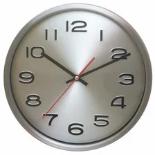 Polecamy atrakcyjny zegar ścienny ze aluminiową ramką. Ramka wyprodukowana jest z wysokiej klasy szczotkowanego aluminium. Aby podnieść walory zegara zastosowano również aluminiową tarczą w kolorze srebrnym z wypukłymi czarnymi cyframi arabskimi. Czas odmierzają trzy aluminiowe wskazówki. Zegar posiada mechanizm kwarcowy o krokowym ruchu sekundnika.