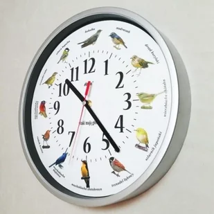 00 20: 00 rudzik krasny ( erithacus akahige ) 09: 00 21: 00 muchodławka rdzaworzytna ( terpsiphone rufocinerea ) 10: 00 trznadel żółty ( emberiza sulphurata ) 11: 00 sikora bogatka ( parus majo r ) 12: 00 kukułka ( cuculus canorus ) Obudowa zegara została wykonana z plastiku w kolorze srebrnym.