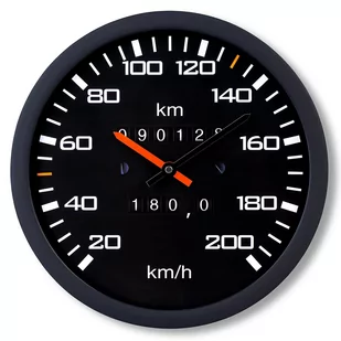 W skrócie:Zegar Prędkościomierz to okrągły zegar ścienny, którego tarcza nawiązuje do wyglądu liczników samochodowych z przełomu lat 80-tych i 90-tych. Godziny na cyferblacie zostały zastąpione podziałką prędkościomierza, którego skala sięga 200 km/h. Tarcza zegara posiada też nadrukowany licznik kilometrów, który już zawsze będzie miał niewielki przebieg. ;) Dla miłośnika samochodów z dawnych lat:Tarcza zegara wiernie naśladuje licznik auta z minionej epoki, jednak gadżet powinien spodobać się wszystkim fanom motoryzacji i klasyków, bez względu na ich wiek. Zegar będzie ciekawym prezentem dla męża, który godzinami dłubie przy samochodzie, dla taty, który z nostalgią wspomina auta, które produkowało się na długie lata czy dla syna lub brata, którego konikiem jest historia motoryzacji. Zegar Prędkościomierz jest w szczególności polecany jako prezent dla mężczyzny, ale warto pamiętać, że są też kobiety, które kochają samochody.Gadżet motoryzacyjny dla automaniaka:Naturalnym środowiskiem do powieszenia tego gadżetu będą zarówno warsztat samochodowy, zakład wulkanizacyjny, sklep motoryzacyjny, jak i garaż domorosłego mechanika oraz męska jaskinia. Dowolne miejsce, w którym przesiaduje automaniak, będzie odpowiednie do powieszenia Zegara Prędkościomierza. Zdany egzamin na prawo jazdy to też doskonała okazja do tego, by podarować młodemu kierowcy ten ciekawy motoryzacyjny gadżet. Zegar Prędkościomierz zdecydowanie sprawdzi się jako prezent dla kierowcy.Zwraca uwagę:Czarny Zegar Prędkościomierz to jeden z tych zegarów, obok których trudno przejść obojętnie, szczególnie komuś, kto kocha auta. Powieszony na ścianie przyciąga wzrok i sugeruje, że właściciel domu to prawdziwy miłośnik samochodów z dawnych lat. Na szczęście to wygląd, a nie cykanie zegara zwraca uwagę gości zegar jest praktycznie niesłyszalny dzięki zastosowaniu płynącego mechanizmu.