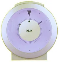 Budzik kwarcowy z unikalnym dyskiem. Jak każdy produkt z serii KLIKklok charakteryzuje się wysoką jakością wykonania i niezawodnością w działaniu. Wykonany jest z wysokiej klasy plastiku w kolorze tytanu. Tarcza w kolorze niebieskim. Sekundnik w postaci obrotowego dysku.
