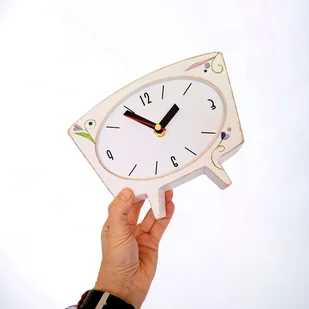 Zegar drewniany biurkowy biały folk