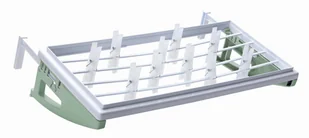 Możesz ją trzymać gdzie tylko chcesz. Jest solidnie wykonana oraz stabilna. Pozwala zaoszczędzić przestrzeń w domu, bez rozstawiania suszarek, które zajmują niepotrzebnie miejsce w domu. Jest świetnym rozwiązaniem dla tych, którzy lubią proste i skuteczne metody! W ZESTAWIE 10 SPINACZY GRATIS! REGULOWANE UCHWYTY DO 12,5CM Wymiary produktu: Długość - 55 cm Szerokość - 27 cm Długość uchwytu: