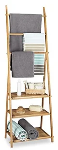 x szer. x gł. : ok. 43,5 x 21 cm - Z 4 haczykami na ubrania (po 2 z każdej strony) na flanele, małe ręczniki itp. Zakres dostawy - Wieszak na ręczniki w pojedynczych częściach - Materiał montażowy - Elementy dekoracyjne nie wchodzą w zakres dostawy Wieszak na ręczniki z 3 uchwytami na ręczniki - tekstylia schną szybciej i nie wydzielają nieprzyjemnych, lepkich zapachów Miejsce do przechowywania: 3 półki oferują miejsce na ręczniki kąpielowe, ubrania, buty, papier toaletowy, świeże ręczniki i wiele innych. Naturalne piękno: wytrzymałe drewno bambusowe o drobnym usłojeniu - idealne do pomieszczeń o wysokiej wilgotności Składany: