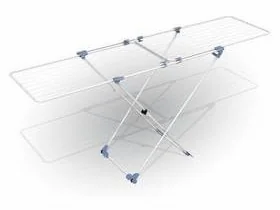 Suszarka do bielizny Duo to ekskluzywna wersja popularnych i praktycznych suszarek, która została zaprojektowana przez włoską firmę Gimi. Wykonana ze stali malowanej proszkowo farbą epoksydową. Jest odporna na działanie czynników atmosferycznych, można ją bezpiecznie postawić na balkonie, czy też tarasie bez obaw na nieestetyczne rdzewienie. Dwa, niezależnie przesuwane na dwóch poziomach skrzydła, pozwalają uzyskać maksymalną szerokość 209 cm, w stanie złożonym 105 cm (maksymalna powierzchnia suszenia 22mb). Wyposażona w kółka do łatwego przemieszczania i bezpieczne łączniki z tworzywa pozwalające uniknąć przypadkowego złożenia.
