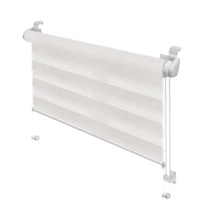 Mini roleta ZEBRA CLASSIC Dzień/Noc biała 42,5 cm x 150 cm Wysokiej jakości roleta, przeznaczona do montażu na skrzydle okna za pomocą zaciskowych wieszaków. Konstrukcja elementów montażowych zapewnia bezinwazyjny montaż do każdego rodzaju okna bez używania jakichkolwiek narzędzi i urządzeń. Roleta wykonana jest z doskonałej jakości tkaniny poliestrowej tkanej na przemian gęstym i rzadkim splotem. Taka struktura materiału daje możliwość płynnej regulacji ilości przepuszczanego światła. Ciemne i jasne pasy tkaniny można ustawiać względem siebie według indywidualnych potrzeb.