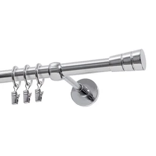 Karnisz pojedynczy chrom jest bardzo estetycznym produktem, który możesz stosować wewnątrz budynków. To również gotowy zestaw, który obejmuje wszystkie elementy potrzebne do montażu. Oprócz kołków w zestawie znajdziesz również wsporniki, zakończenia, rurkę, a także kółka wraz z żabkami. Pozwoli Ci to na sprawne przeprowadzenie montażu.