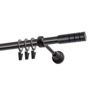 Karnisz pojedynczy w kolorze czarnym, z zestawem montażowym.