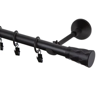 Możemy również ściągnąć dołączone kółka i zawiesić firany, zasłony na przelotkach, ponieważ wsporniki karnisza są otwarte, co ułatwi nam to zadanie. W skład kompletu wchodzi karnisz z zakończeniami, wsporniki ścienne oraz kółka cichobieżne z żabkami.
