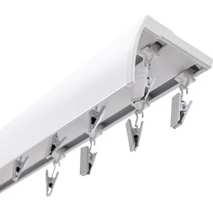 Szyna wykonana jest z aluminium lakierowanego proszkowo. Wykonanie z aluminium gwarantuje wytrzymałość na odbarwienia i odkształcenia. Szyna wykonana jest z ekstrudowanego stopu aluminium i pokryta warstwą białego lakieru proszkowego ( RAL 9003 ). Szyna ta przeznaczona jest do montażu w zabudowach sufitów podwieszanych wykonanych w szczególności z płyt gipsowo - kartonowych. Skład zestawu; szyna aluminiowa z osłoną 200 cm - 1szt.