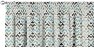 Dekoria, Modern, lamberkin na taśmie marszczącej, wzór geometryczny w odcieniach pastelowego błękitu i beżu na jasnym tle, 390×40cm