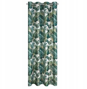Eurofirany Zasłona 140x250 Davos biała zielona liście monstery złota welurowa gotowa na przelotkach