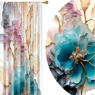GOTOWE ZASŁONY NA ŻABKI TAŚMIE 140X240 ZASŁONA DO SALONU POKOJU KWIATY 138