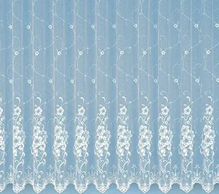 heimtexland Typ 261 szlachetna firanka żakardowa o wyglądzie zasłonki florenckiej, czysta biel z kwiatami, wymiary na życzenie, sprawdzona wysoka jakość , miękko opadająca - wypakuj, zawieś, gotowe -