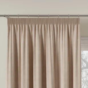 Miękka zasłona gotowa na taśmie o strukturze płótna, kolor beżowy, rozmiar 140x250 cm, Idalia