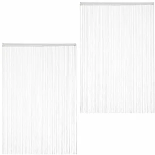 Kurtyna z białych nici w szczegółach - Wymiary szer. x wys. : po ok. 90 x 245 cm i 145 x 245 cm - Średnica sznurka ściągającego: ok. 3,2 cm - Odległość między nitkami: ok. 0,5 cm - Materiał: poliester - Kolor: