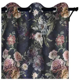 Voppi Zasłona na przelotkach kółkach 140 x280 ciemna zasłona w kwiaty elegancka dekoracja do salonu pokoju sypialni