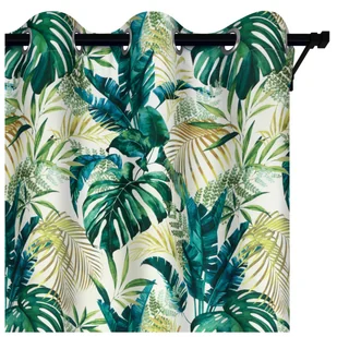 Voppi Zasłona w egzotyczne zielone liście 140 x 240 cm półzaciemniająca zasłona z oczkami przelotkami