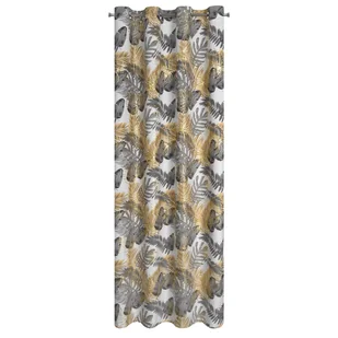 Miękka i delikatna w dotyku zasłona z przyjemnej welwetowej tkaniny, którą zdobi modny motyw egzotycznych liści ze złotymi elementami, na białym tle, to dodatek świetnie pasujący do nowoczesnych wnętrz. Praktyczne przelotki sprawiają, że zmiana dekoracji trwa tylko krótką chwilę, a tkanina pięknie się prezentuje po zawieszeniu na karniszu. Grubsza tkanina świetnie izoluje światło słoneczne zapewniając przyjemny klimat we wnętrzu. Idealna do każdego wnętrza Praktyczne przelotki sprawiają, że zmiana dekoracji trwa tylko krótką chwilę, a tkanina pięknie się prezentuje po zawieszeniu na karniszu.