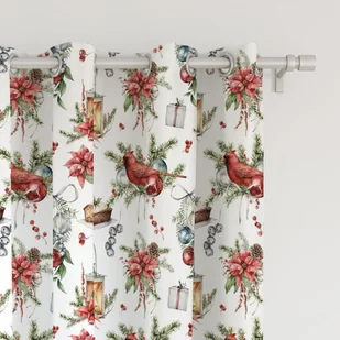 Zasłona WINTER wzór BN30 | świąteczny stroik z czerwonym ptakiem 150 x 280 cm tkanina zaciemniająca Kolekcja: WINTER Ilość w opakowaniu: 1 szt. - gruba tkani...