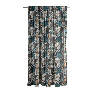 Zasłona zaciemniająca NAVIA - szer. 200 x wys. 280 cm - poliester - wzór liści w kolorze szarym, niebieskim i pomarańczowym