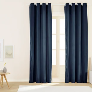 Komplet 2 zasłon SMUKEE HOME uszytych z miękkiej i połyskującej tkaniny welwetowej w kolorze granatowym to propozycja do nowoczesnych lub klasycznych wnętrz. Metalowe przelotki umieszczone w górnej części zasłony umożliwiają wygodne zawieszenie zasłony na karniszu.