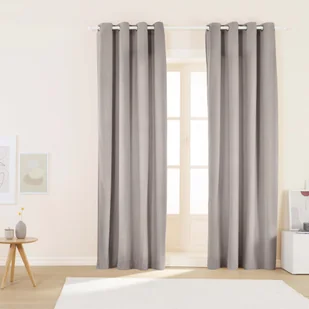 Komplet 2 zasłon SMUKEE HOME uszytych z miękkiej i połyskującej tkaniny welwetowej w kolorze szarym to propozycja do nowoczesnych lub klasycznych wnętrz. Metalowe przelotki umieszczone w górnej części zasłony umożliwiają wygodne zawieszenie zasłony na karniszu.